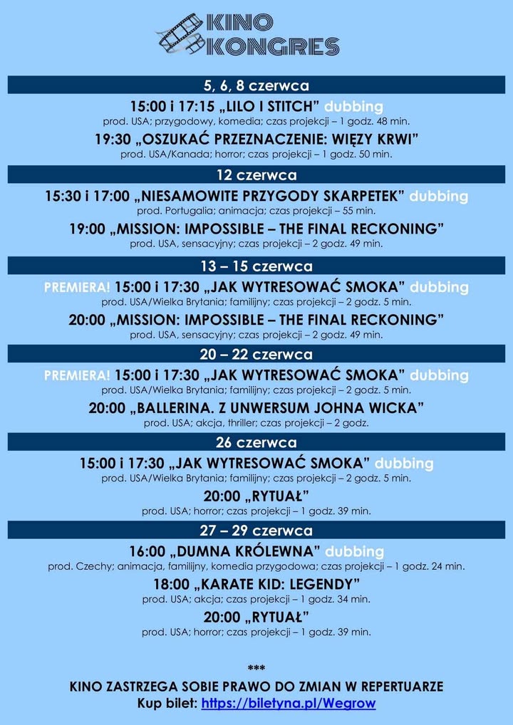 Repertuar kina Kongres - czerwiec 2025Archiwum